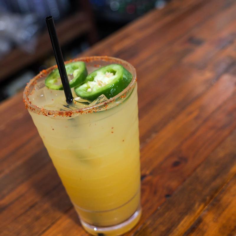 Dulce Vida Pineapple Jalapeño, jalapeño simple syrup, fresh jalapeños, housemade sour mix with Tajin rim.